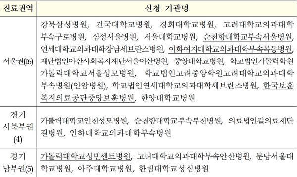 진료권역별로는 서울권 3개, 경남동부권 2개, 경기남부·강원·충남·경남서부권에서 각 1개의 기관이 추가로 신청했다.