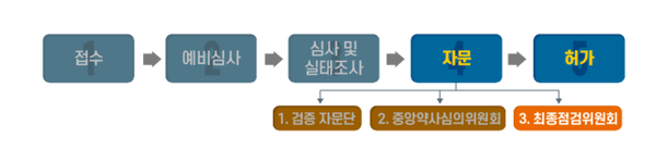 식약처는 코로나19 치료제의 허가심사 과정에 있어 전문성과 객관성을 확보하고자 「약사법」에 따른 식약처의 법정 자문기구 ‘중앙약사심의위원회’에 더해 ‘코로나19 치료제/백신 안전성·효과성 검증 자문단’(이하 검증 자문단)과 ‘최종점검위원회’를 추가로 구성해 3중의 자문 절차를 거쳤다.