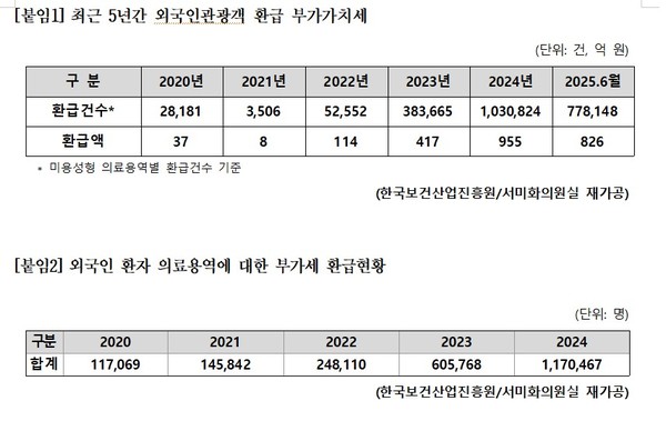 올해 상반기 외국인 미용‧성형 부과세 환급액 총 826억 원, 총 환급 건수 77만8,148건…작년 전체치의 86% 넘어